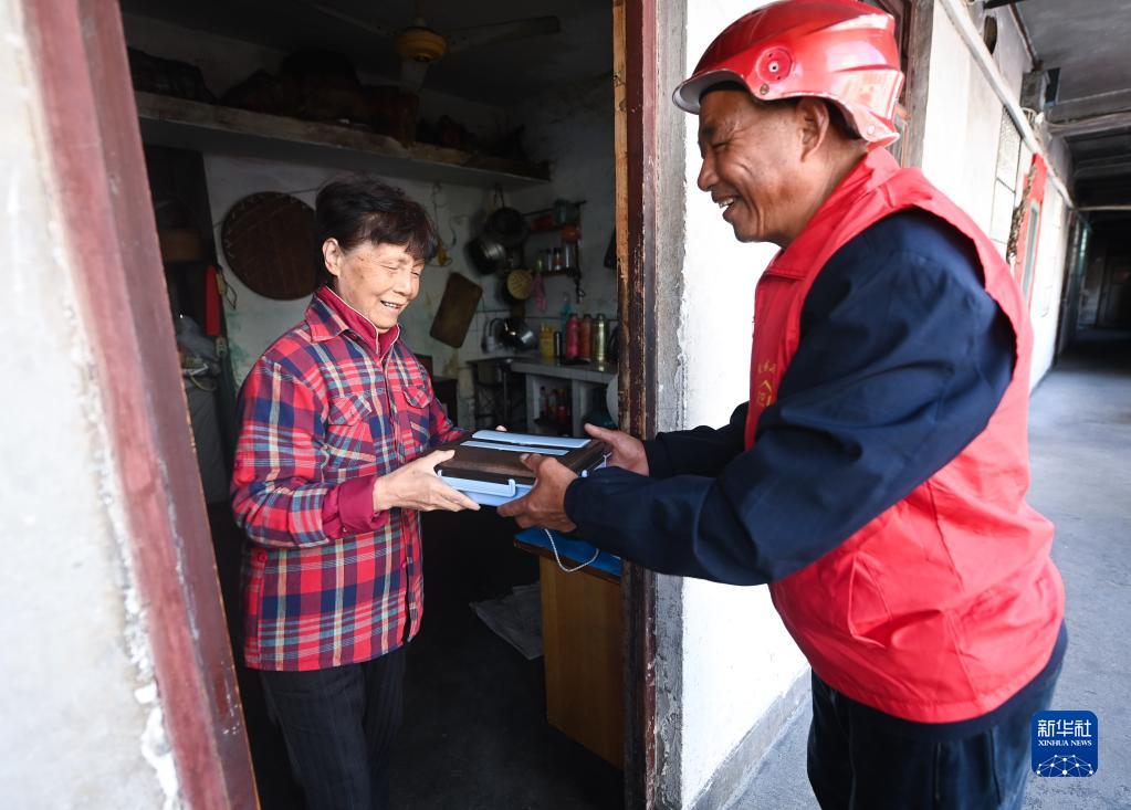 10月25日,昌化鎮居家養老服務中心的送餐員為高齡老人送餐上門。
