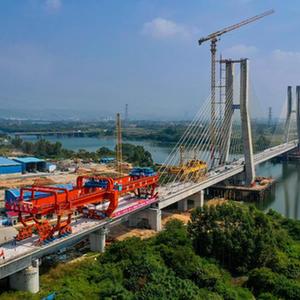 當日,中鐵五局承建的廣汕鐵路鋪架施工最后一孔900噸箱梁成功架設在廣州增江特大橋橋墩上,標志著全線箱梁架設完成。