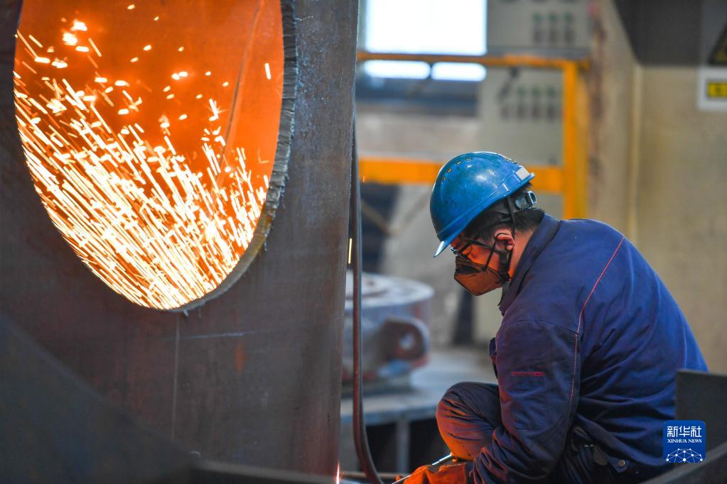 在哈電集團(tuán)哈爾濱鍋爐廠有限責(zé)任公司的生產(chǎn)車(chē)間,工人在生產(chǎn)作業(yè)(10月24日攝)。