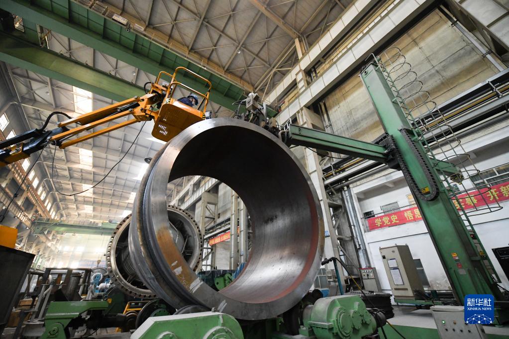 在哈電集團哈爾濱鍋爐廠有限責(zé)任公司的生產(chǎn)車間,工人在生產(chǎn)作業(yè)(10月24日攝)。
