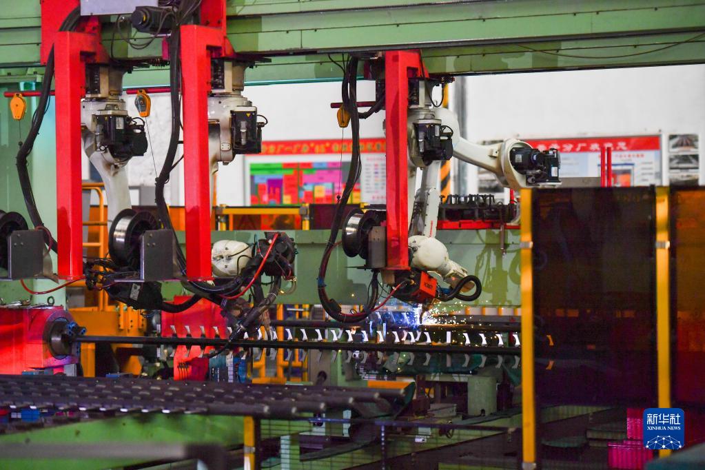 在哈電集團(tuán)哈爾濱鍋爐廠有限責(zé)任公司的生產(chǎn)車間,工業(yè)機(jī)器人在作業(yè)(10月24日攝)。