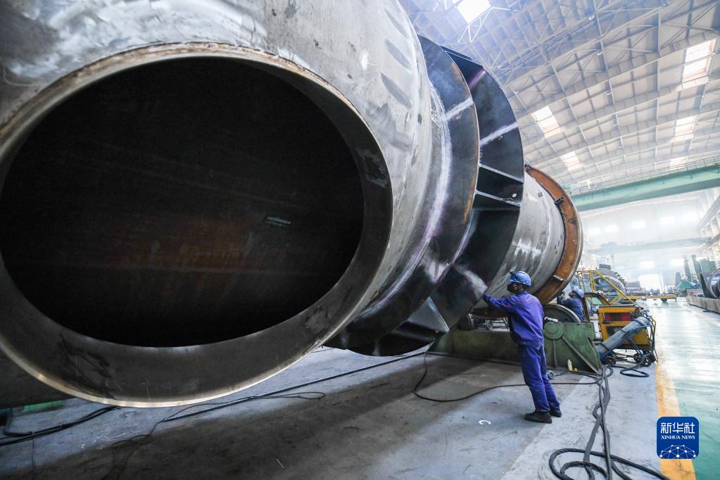 在哈電集團哈爾濱鍋爐廠有限責任公司的生產車間,工人在生產作業(10月24日攝)。