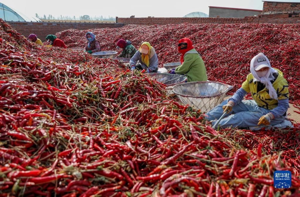 近日,內蒙古通遼市開魯縣迎來紅干椒收獲銷售旺季。開魯縣紅干椒皮紅肉厚、品質優良,產品暢銷國內外市場。近年來,開魯縣紅干椒種植面積穩定在60萬畝。