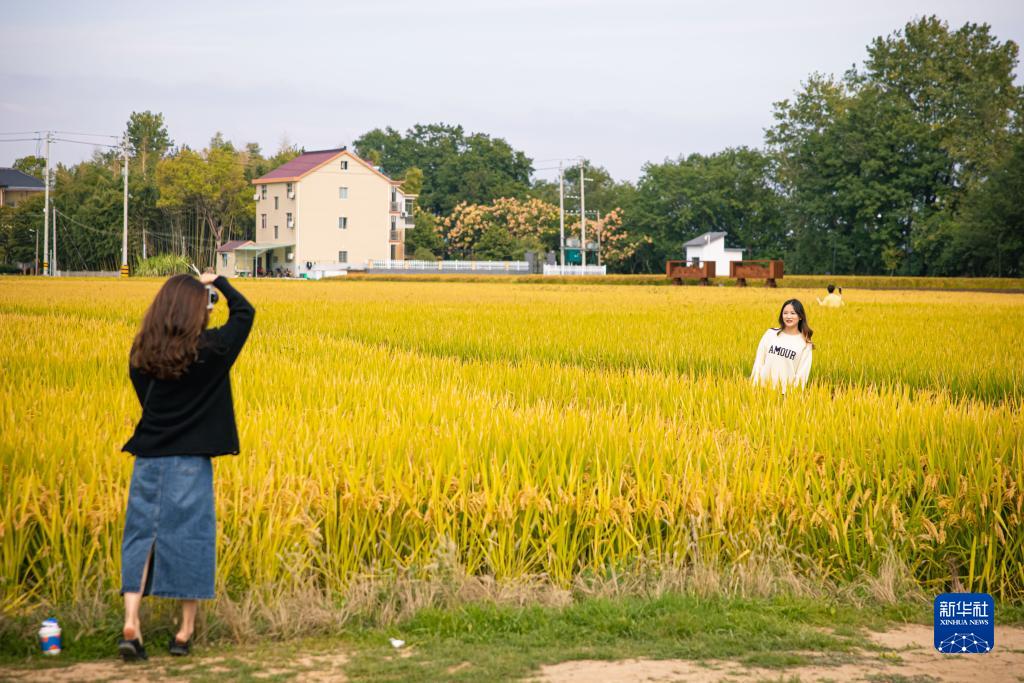 近日,浙江省杭州市桐廬縣的鄉(xiāng)村里稻田金黃、丹桂飄香,展現(xiàn)出美麗的金秋畫卷。