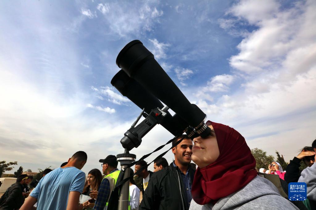 10月25日,一名女子在約旦首都安曼的城堡山上觀看日食。