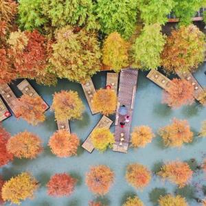 江蘇泗洪洪澤湖濕地景區(qū)占地面積5.2平方公里,生態(tài)環(huán)境優(yōu)美。深秋時節(jié),濕地景區(qū)內(nèi)一步一景,五彩斑斕,美不勝收。