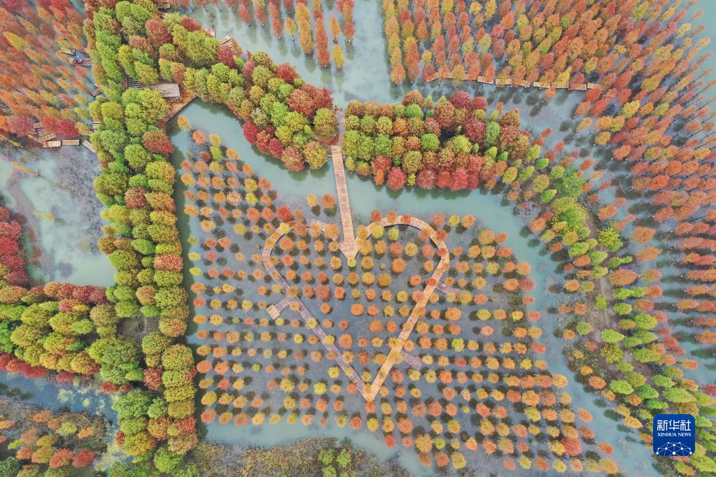 這是10月26日拍攝的泗洪洪澤湖濕地景區秋色(無人機照片)。