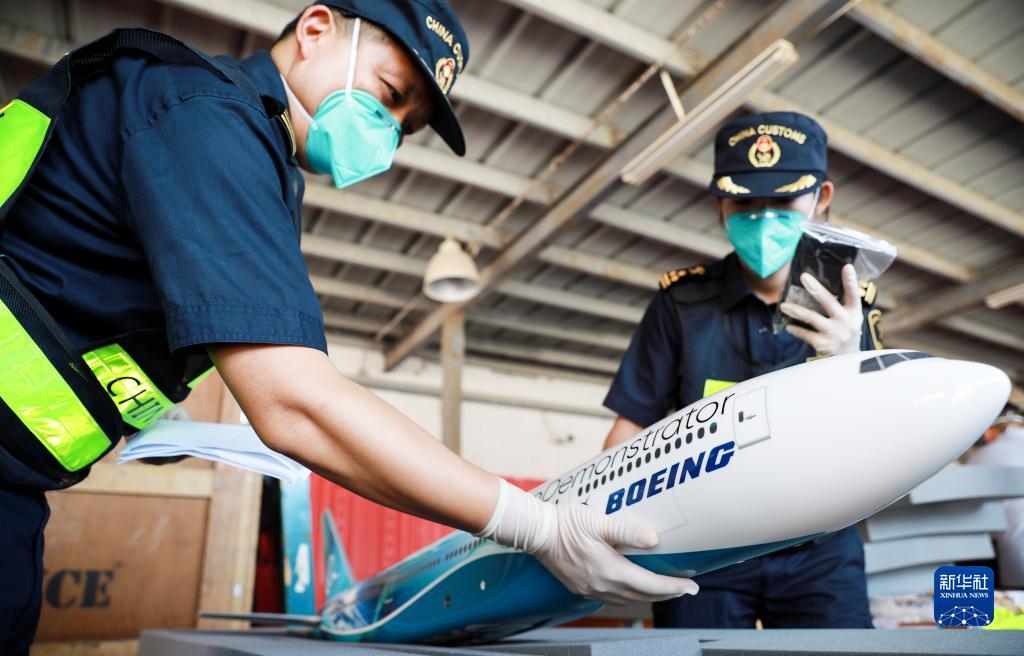 10月26日,拱北海關關員為本屆航展首批境外參展物資辦理驗放手續。新華社發(俞波 攝)