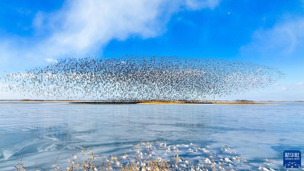 這是2021年12月25日在山東黃河三角洲國(guó)家級(jí)自然保護(hù)區(qū)拍攝的鳥(niǎo)群(無(wú)人機(jī)照片)。