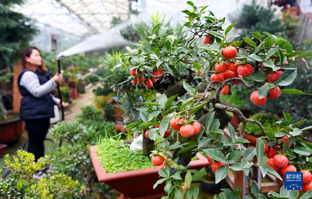 工作人員在西安市長安區秦嶺花世界農業景區管護植物(10月26日攝)。