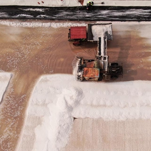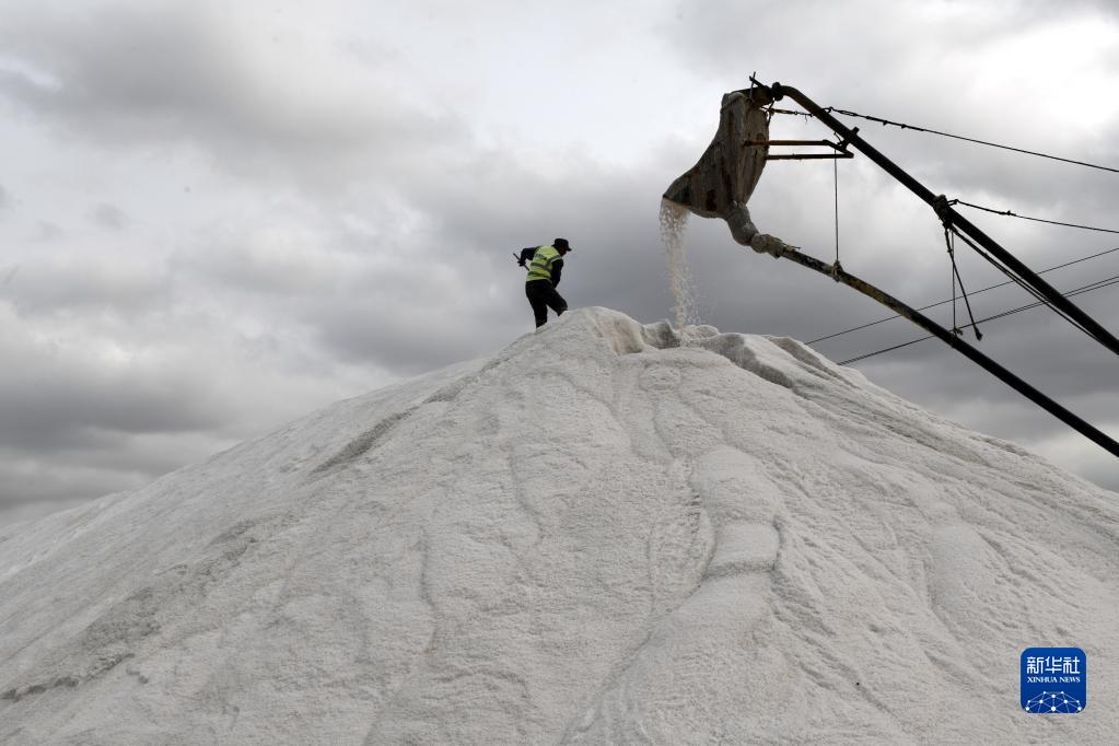 目前,山東省濱州市沾化區濱海鎮轄區的40萬畝鹽田已進入秋鹽收獲的繁忙時節,收獲季將持續至11月上旬。