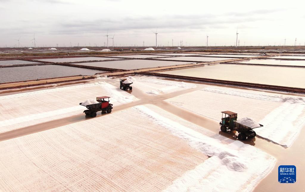目前,山東省濱州市沾化區(qū)濱海鎮(zhèn)轄區(qū)的40萬畝鹽田已進(jìn)入秋鹽收獲的繁忙時節(jié),收獲季將持續(xù)至11月上旬。
