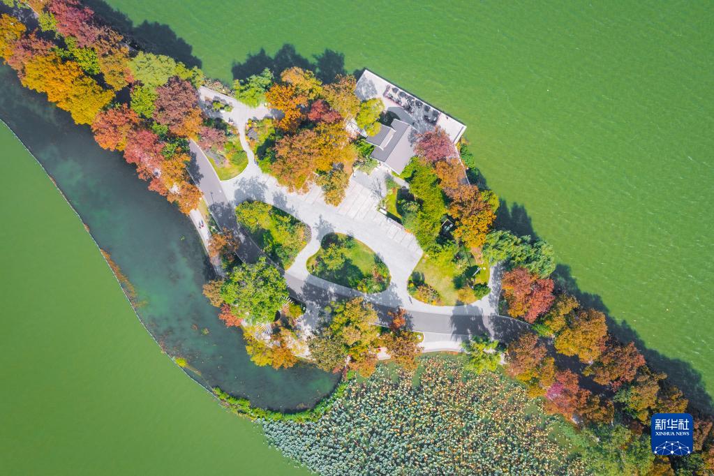 10月25日拍攝的江蘇省南京玄武湖公園秋景(無人機(jī)照片)。