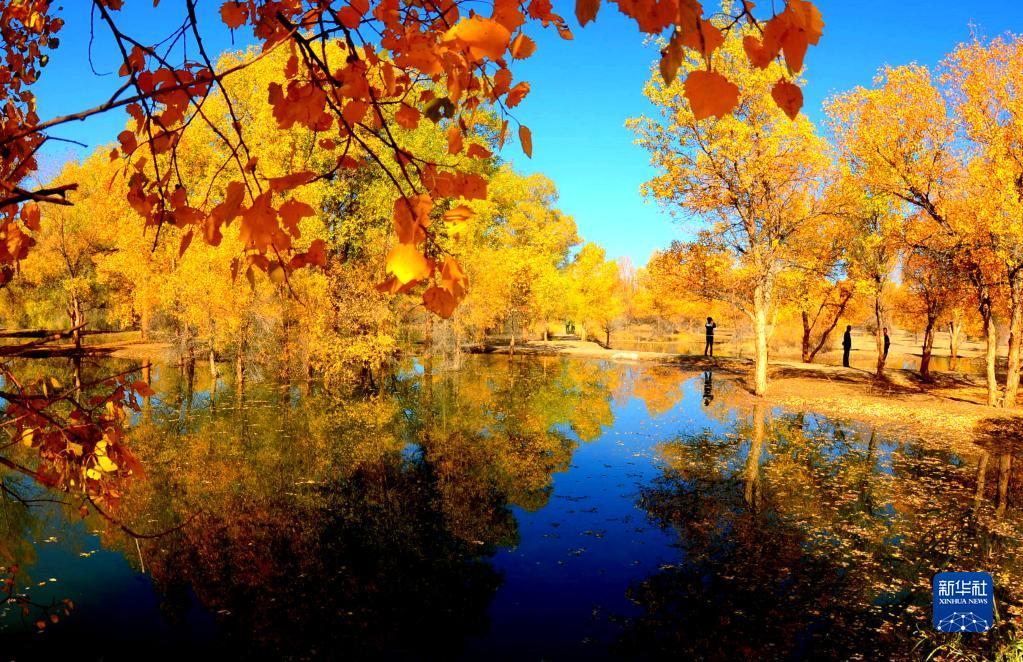 10月7日,游客在甘肅省金塔縣胡楊林景區(qū)拍照游玩。