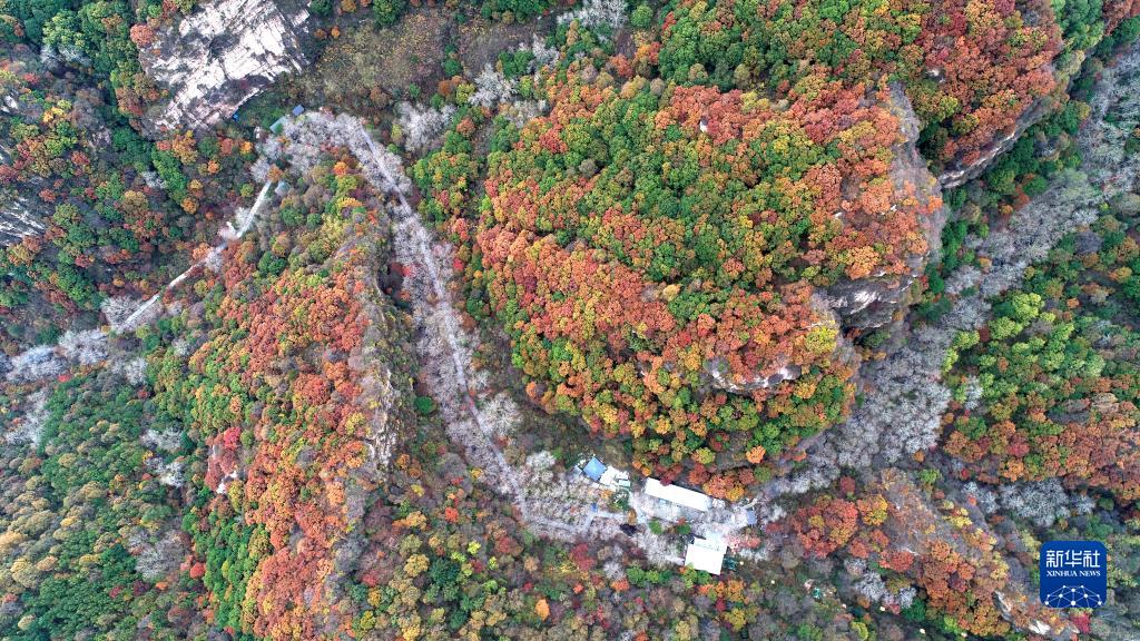 這是10月5日在河北省石家莊市平山縣拍攝的駝梁自然風景區秋景(無人機照片)。