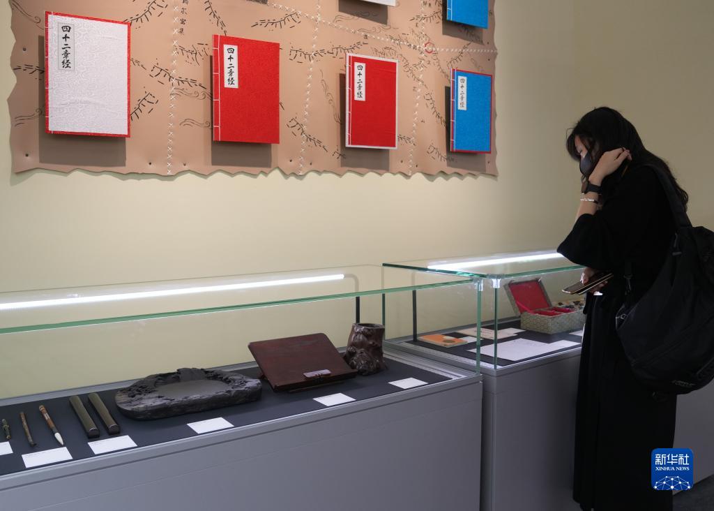 10月28日,觀眾在參觀金庸的文房四寶等展品。