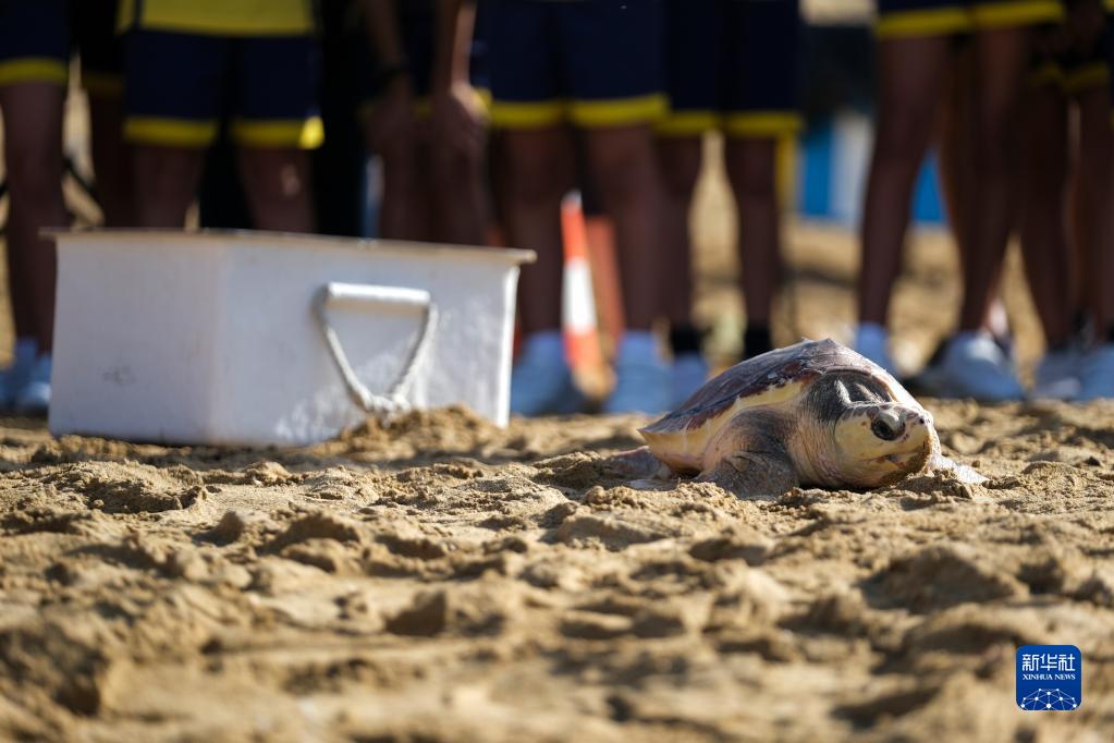 10月27日,在馬耳他馬尼卡塔的金海灣,一只經過救治后康復的海龜被放歸大海。