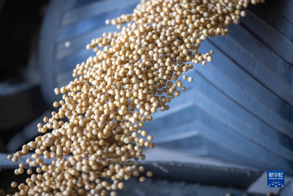 這是10月25日拍攝的綏化市益盛糧食購銷有限公司經過篩選的大豆。