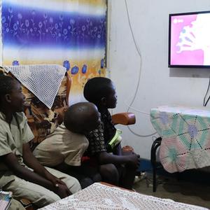 10月31日,在布隆迪布瓊布拉鄉村省穆蒂姆布齊一村莊,孩子們在村民家中觀看衛星電視節目。