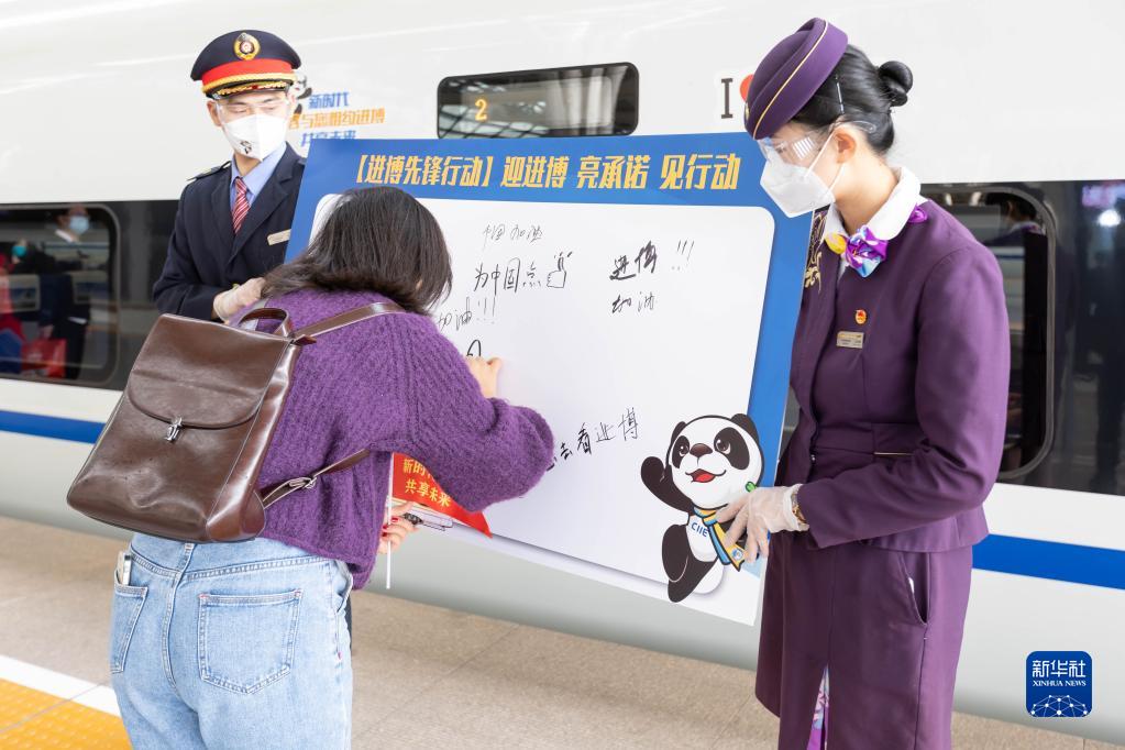 第五屆中國國際進口博覽會開幕在即,鐵路上??瓦\段開展主題活動,向旅客介紹進博會亮點,邀請旅客一起為進博會送上祝福。