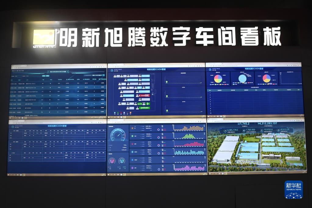 11月2日,在嘉興南湖區的明新旭騰新材料股份有限公司的數字大屏上顯示企業生產的各項實時數據。該企業推進數字化工廠建設,實現信息技術與智能制造深度融合。