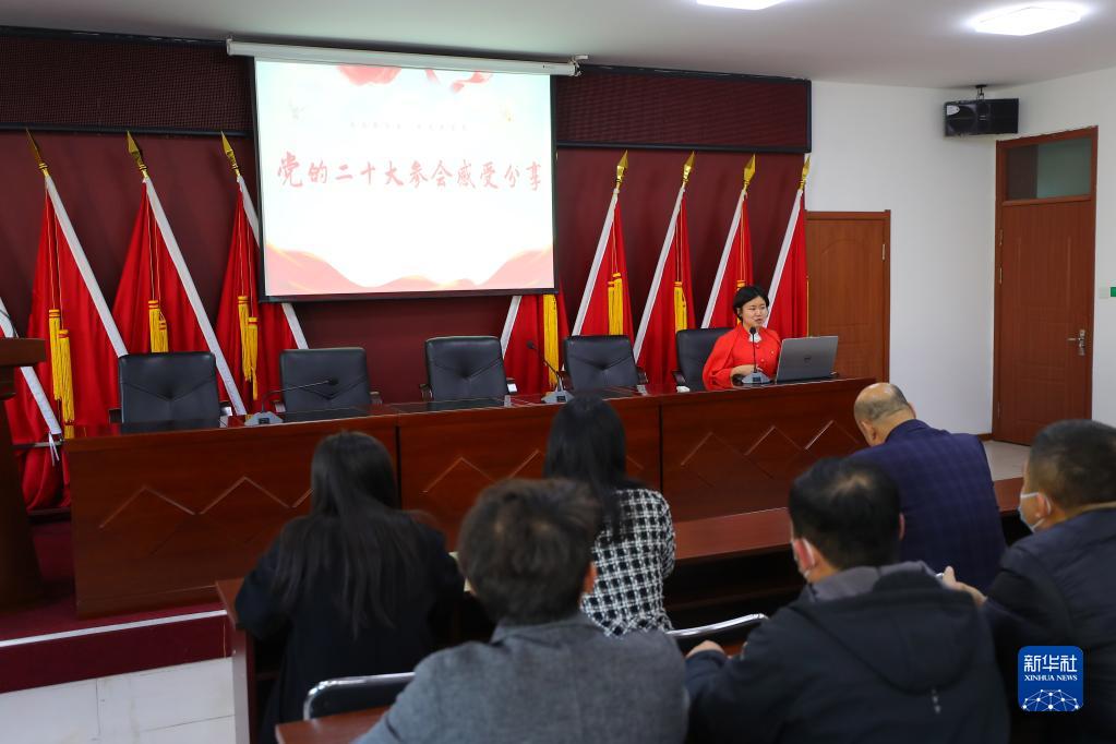11月1日,吳書香在沈陽市蘇家屯區(qū)解放街道向街道黨員和社區(qū)群眾宣講黨的二十大精神。