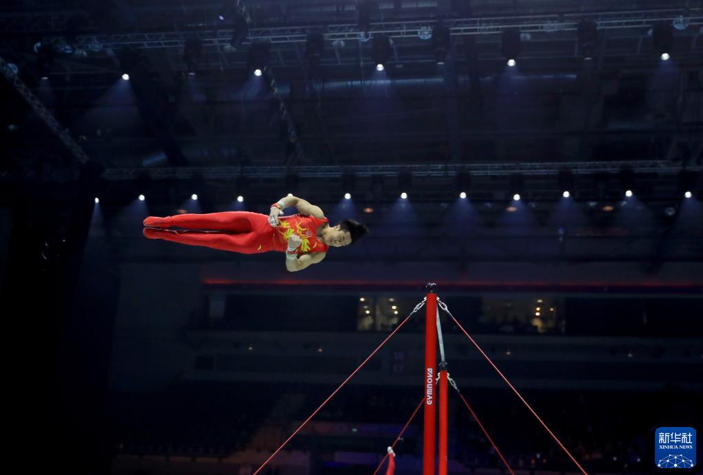 11月2日,中國隊選手楊家興在單杠比賽中。