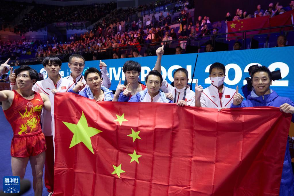 當(dāng)日,在英國利物浦舉行的2022體操世錦賽男子團體決賽中,中國隊獲得冠軍。