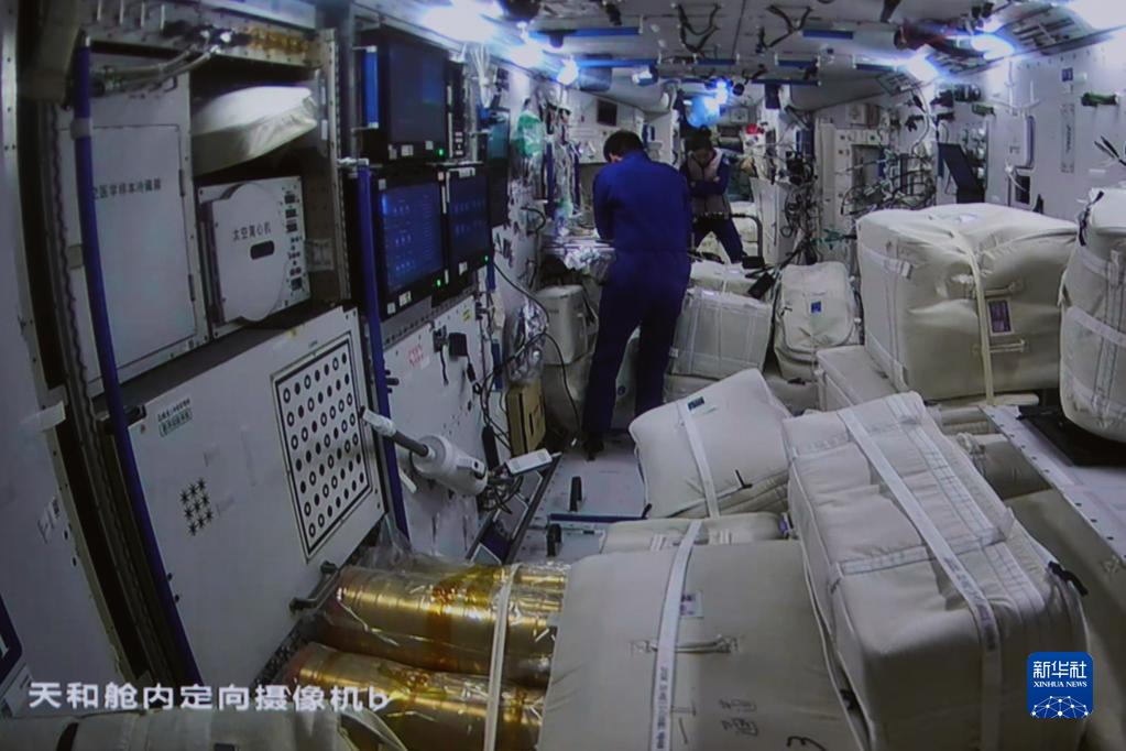 11月3日在北京航天飛行控制中心拍攝的夢天實驗艙完成轉位后天和核心艙內的情況。