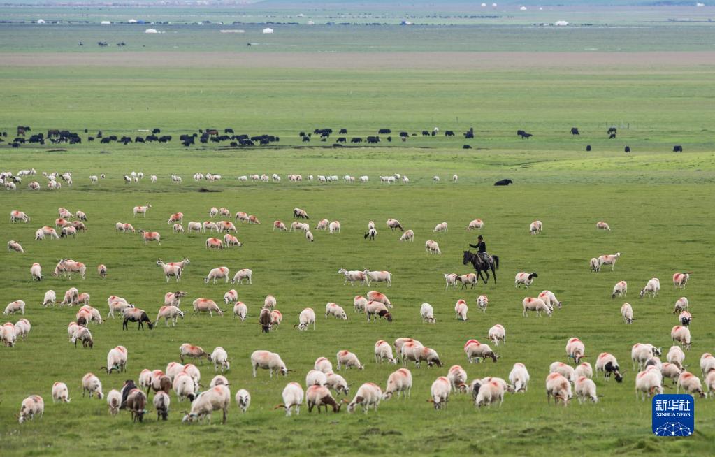 牛羊徜徉在四川若爾蓋濕地國家級(jí)自然保護(hù)區(qū)里(2022年7月25日攝)。