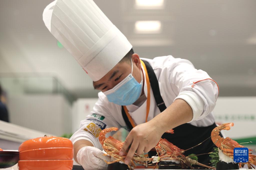 11月3日,廚師在世界川菜烹飪技能大賽暨川味小吃大賽上進行裝盤。
