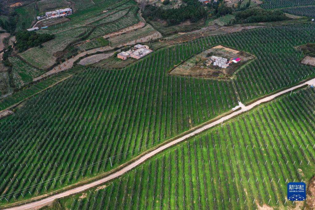 這是11月3日拍攝的貴州省威寧縣一處蘋果園(無人機照片)。