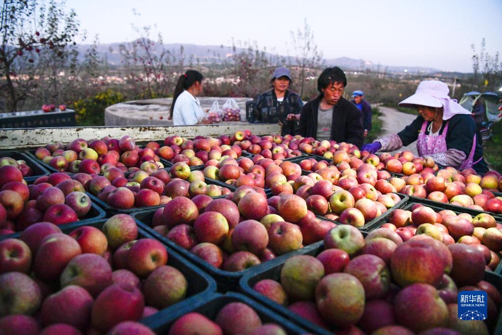 深秋時節,貴州省威寧彝族回族苗族自治縣種植的蘋果陸續收獲。果農忙著采摘、搬運、包裝蘋果,供應市場。