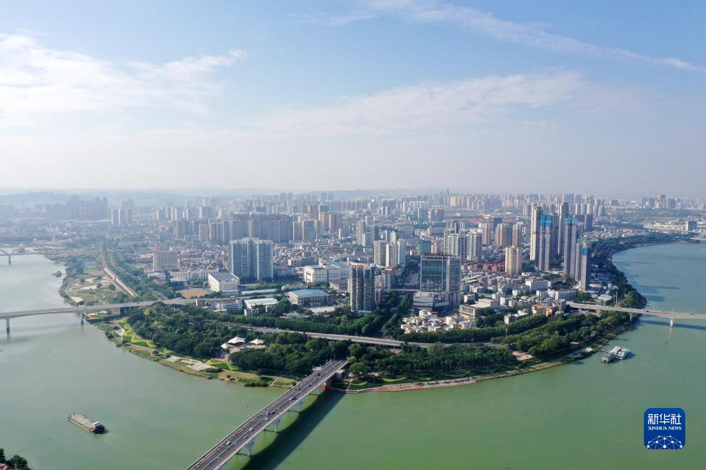 深秋時節(jié),廣西南寧市邕江碧波悠悠,兩岸高樓林立,綠樹掩映,風景宜人。