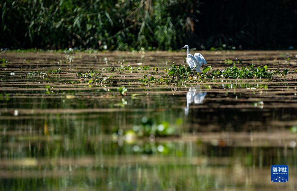 水鳥在西湖國家濕地公園覓食(10月27日攝)。