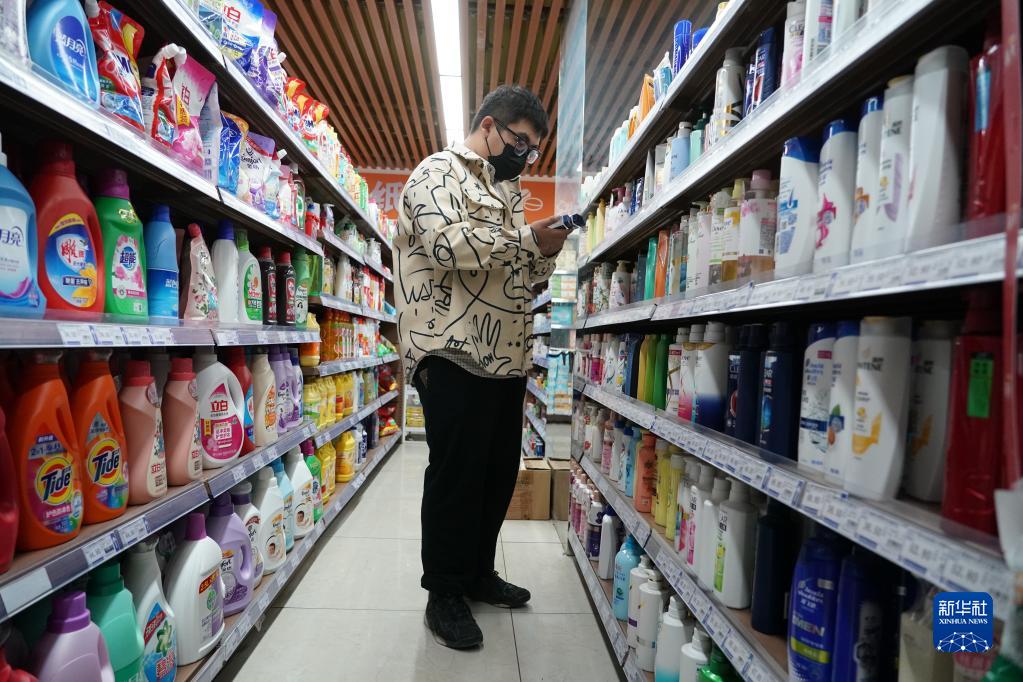 北京科技大學應屆畢業生石全在所居住的青年公寓配套的超市選購生活用品(10月23日攝)。