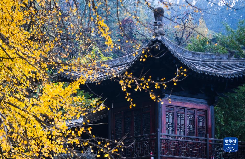 11月4日在西安市長(zhǎng)安區(qū)羅漢洞村終南山古觀音禪寺拍攝的秋景。