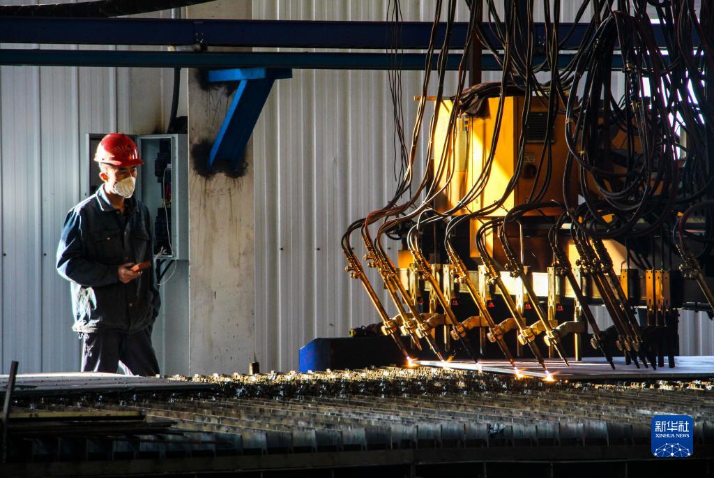 11月2日,在內(nèi)蒙古通遼市龍馬新能源裝備制造產(chǎn)業(yè)園,工人在生產(chǎn)線上工作。