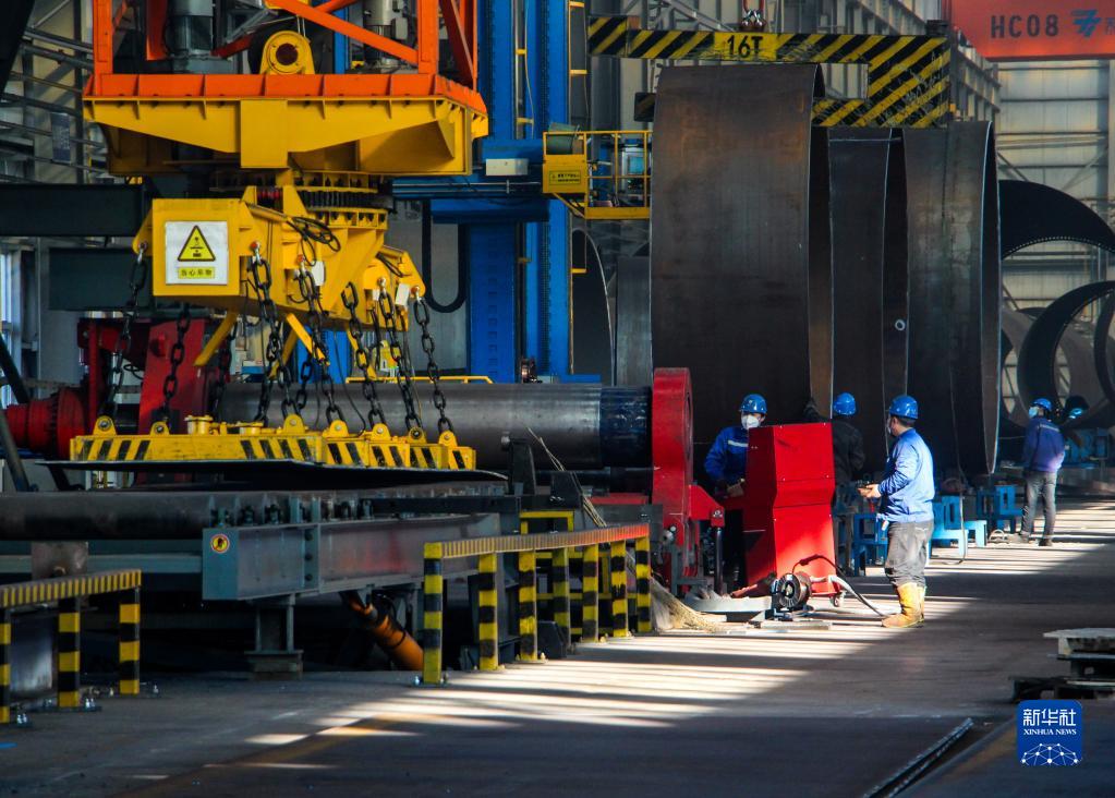 11月4日,在內(nèi)蒙古通遼市天順風(fēng)電設(shè)備有限公司廠房,工人在生產(chǎn)線上工作。