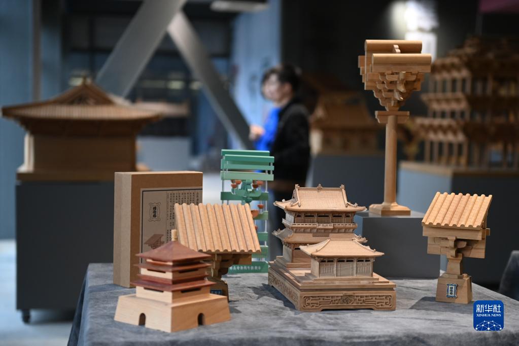11月4日,觀眾在大運河1986文創園的中國榫卯技藝體驗空間參觀古建筑積木。