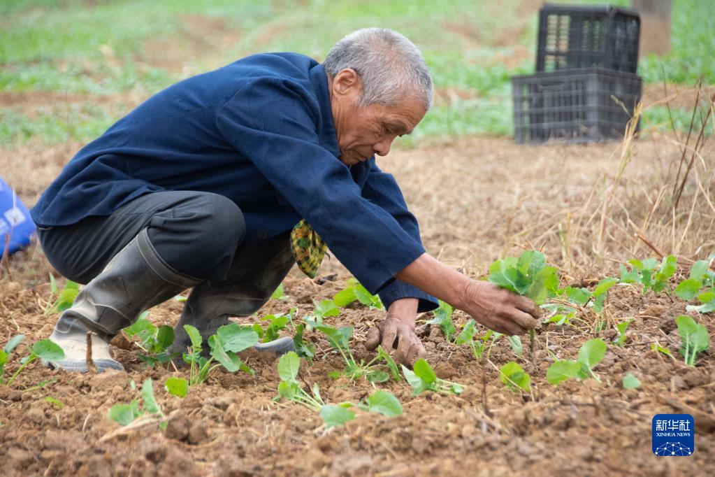11月4日,在湖南省湘潭市湘潭縣中路鋪鎮(zhèn)柳橋村,村民在栽種油菜苗。