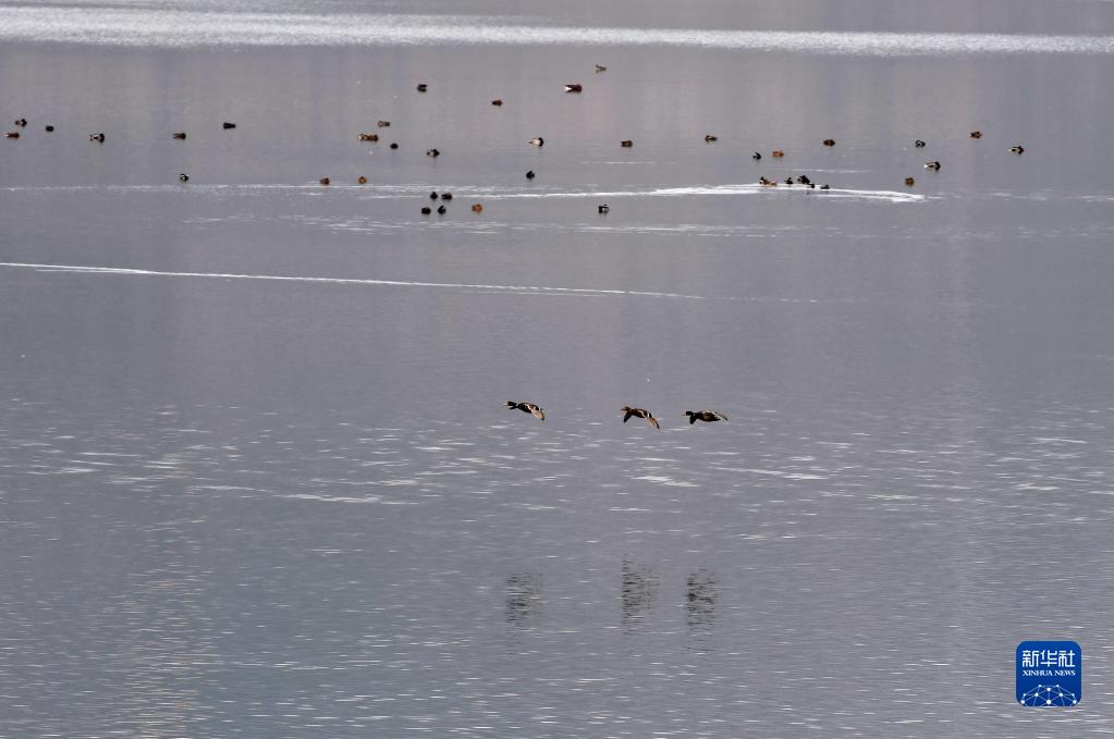 這是天津下營環秀湖國家濕地公園中的水鳥(11月2日攝)。