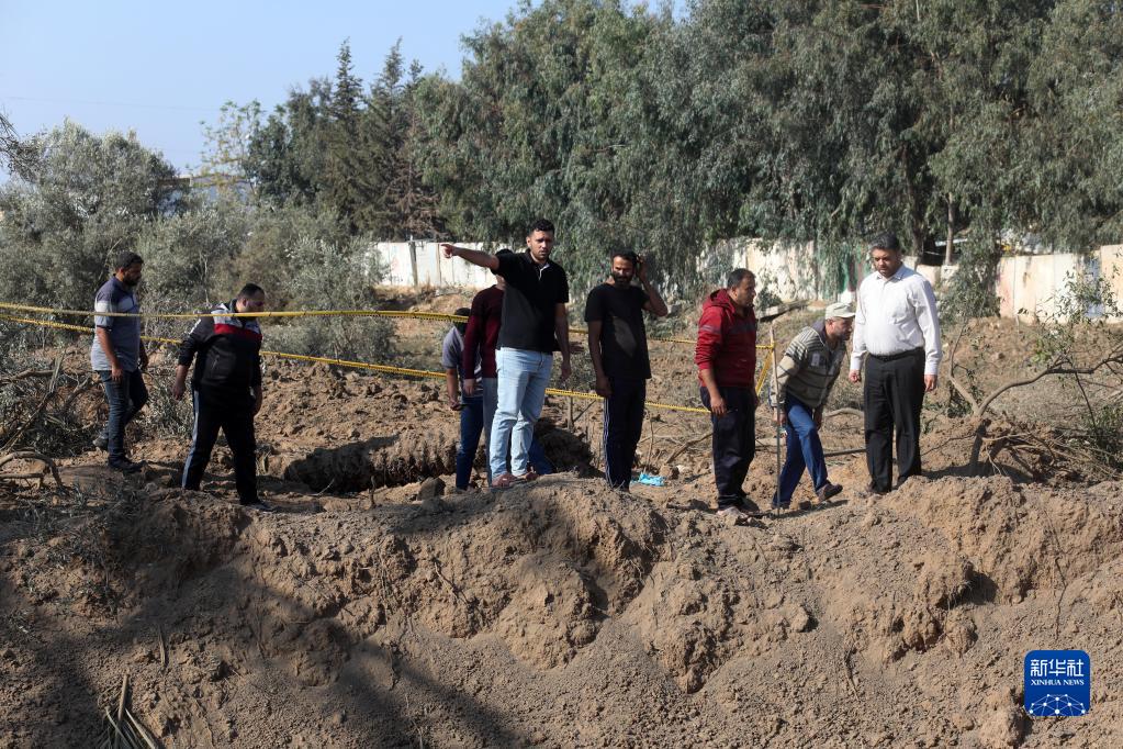 11月4日,人們查看位于加沙地帶中部的遭以軍空襲破壞的區域。