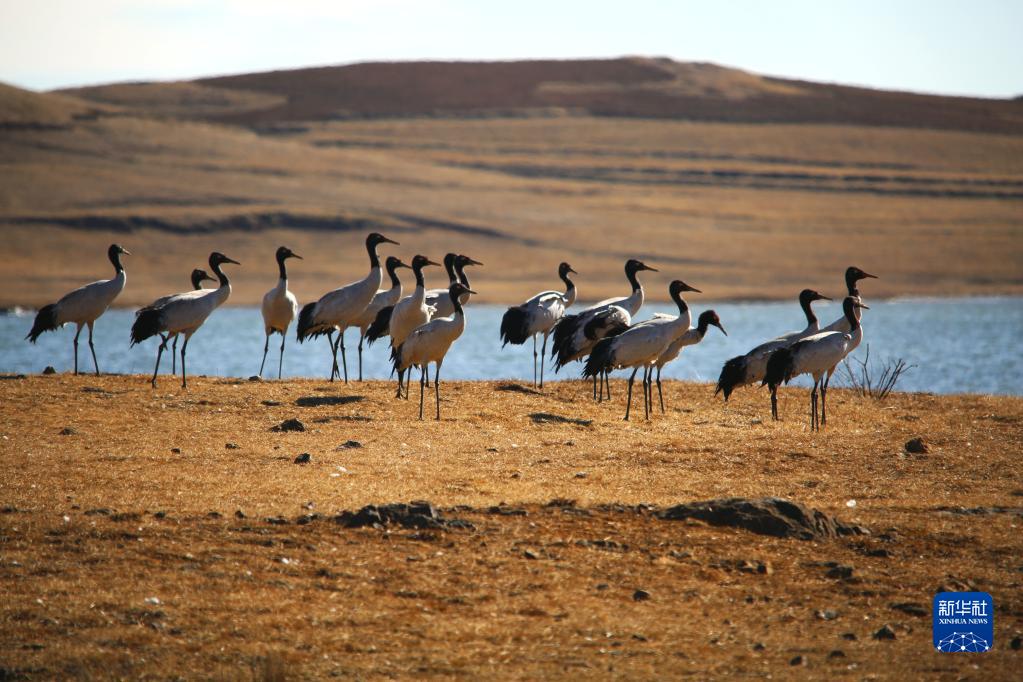 云南大山包黑頸鶴國家級自然保護區管護局最新監測發現,越冬黑頸鶴近日陸續飛抵該保護區大海子濕地,截至11月1日已達百余只,這意味著該保護區已開啟新的黑頸鶴越冬季。新華社發(吳太平 攝)