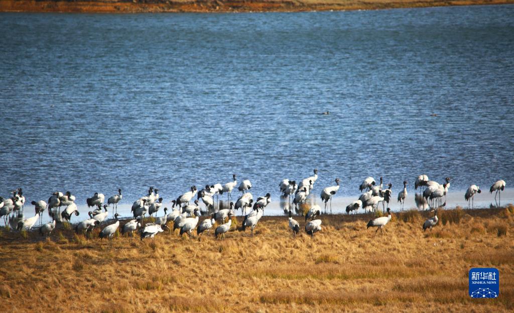云南大山包黑頸鶴國家級自然保護區管護局最新監測發現,越冬黑頸鶴近日陸續飛抵該保護區大海子濕地,截至11月1日已達百余只,這意味著該保護區已開啟新的黑頸鶴越冬季。新華社發(吳太平 攝)
