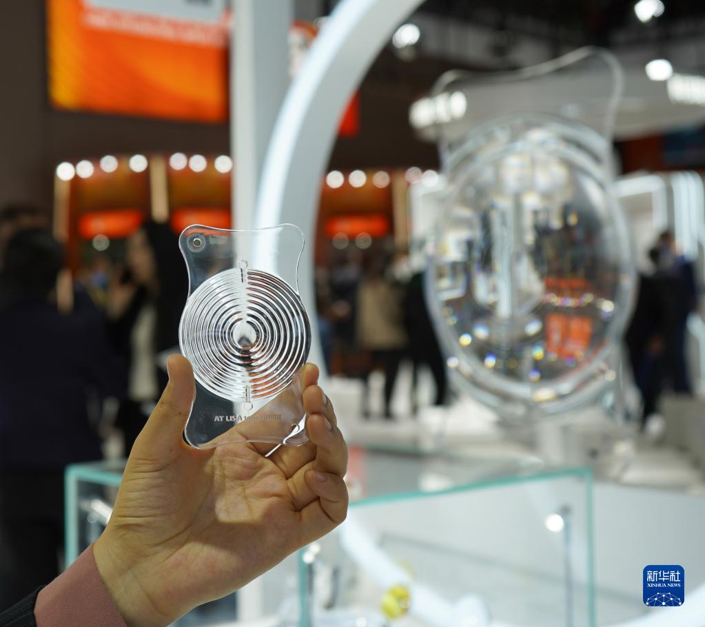 這是11月5日在第五屆進博會技術裝備展區蔡司展臺拍攝的人工晶狀體模型。