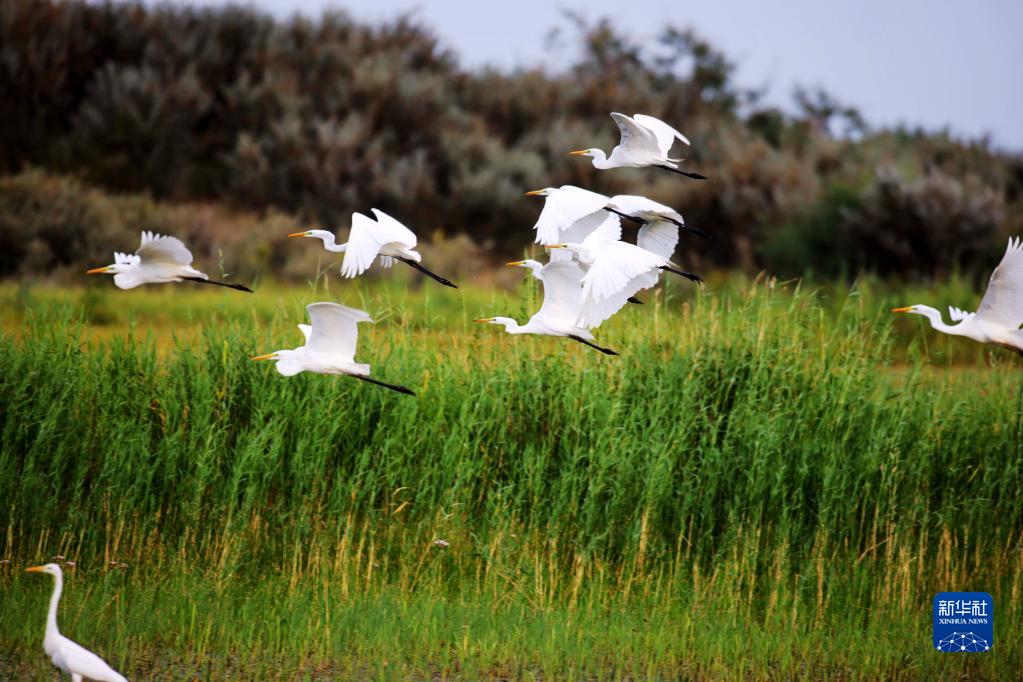 新疆阿勒泰科克蘇濕地國家級自然保護區內的白鷺(2022年8月8日攝)。