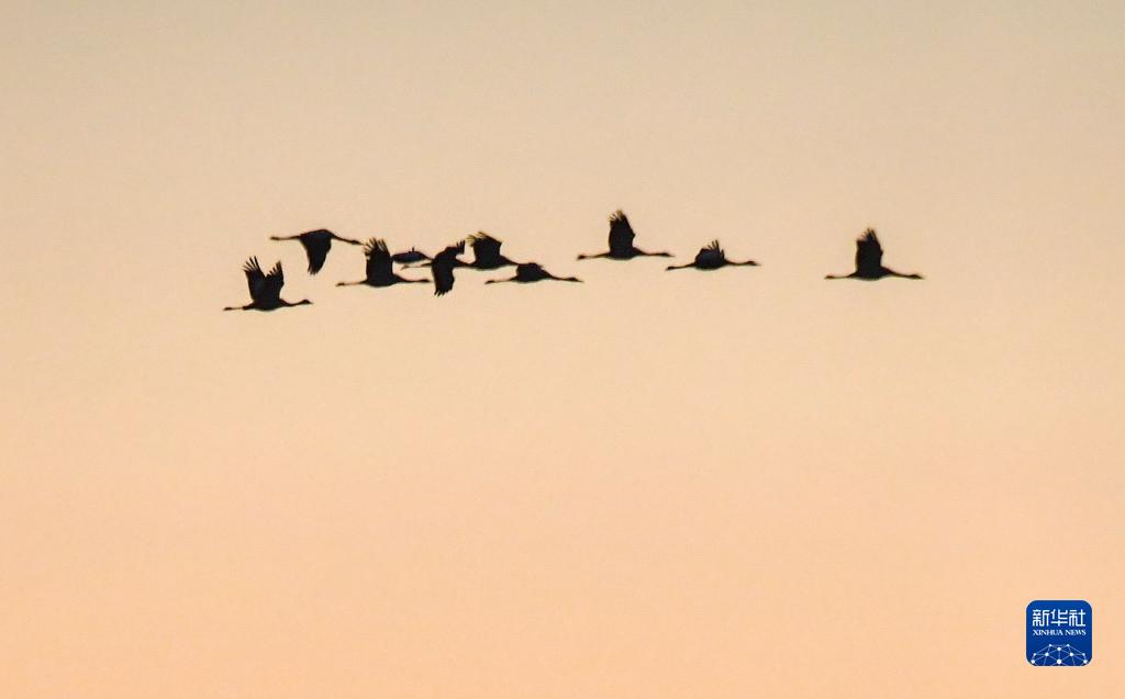 11月3日,候鳥從吉林省白城市鎮(zhèn)賚縣莫莫格國(guó)家級(jí)自然保護(hù)區(qū)上空飛過。