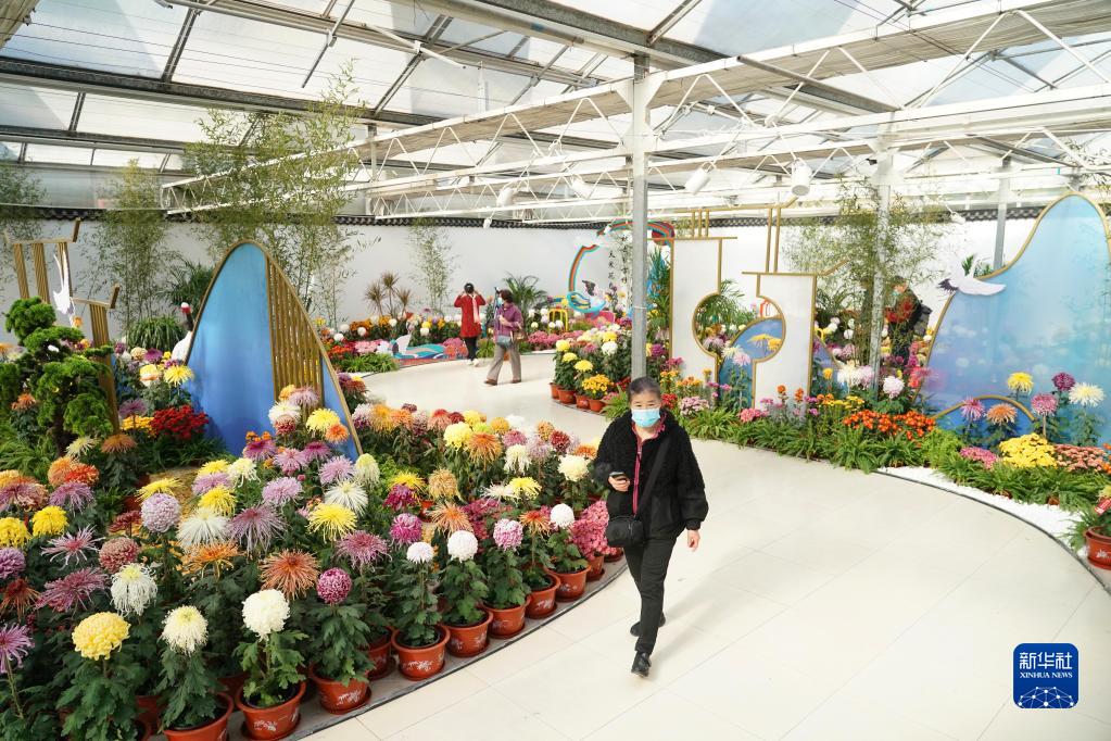 11月5日,游人在北京世界花卉大觀園觀賞菊花。 新華社記者 任超 攝