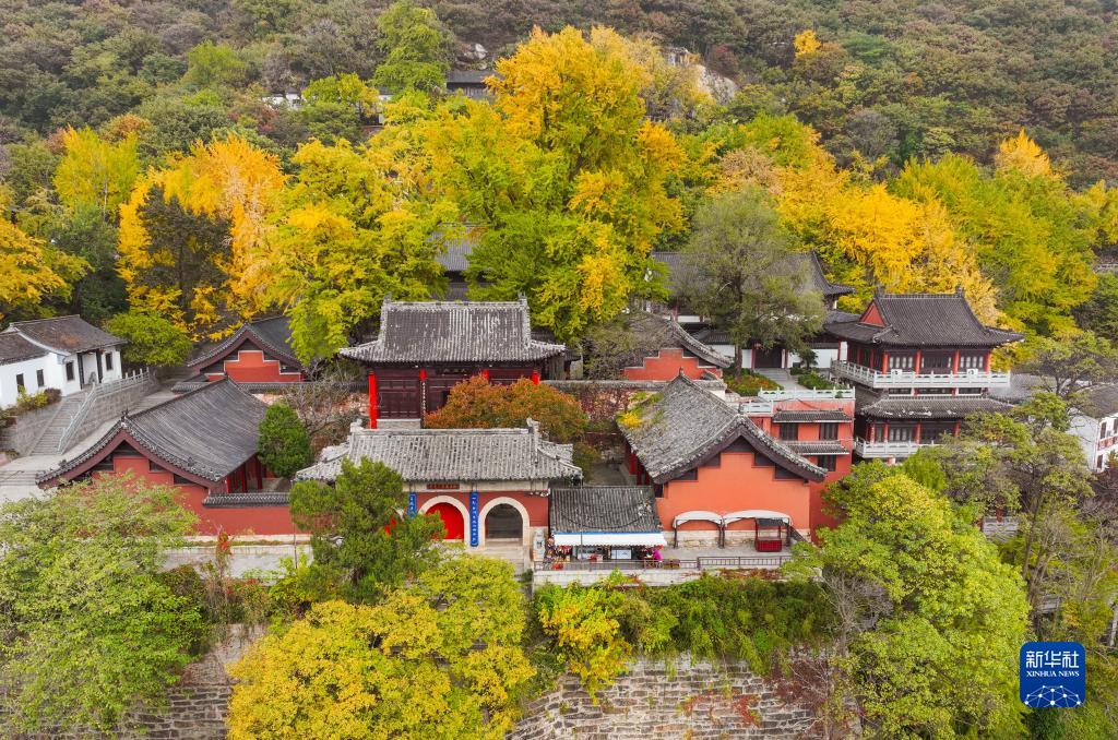 這是10月30日在江蘇省連云港市花果山三元宮拍攝的秋景(無人機照片)。 新華社發(王健民 攝)
